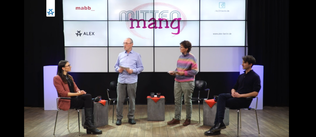 mittenmang - das sind engagierte Bürgerinnen und Bürger jenseits der 60, die ein TV-Magazin im Studio von ALEX Berlin betreiben.