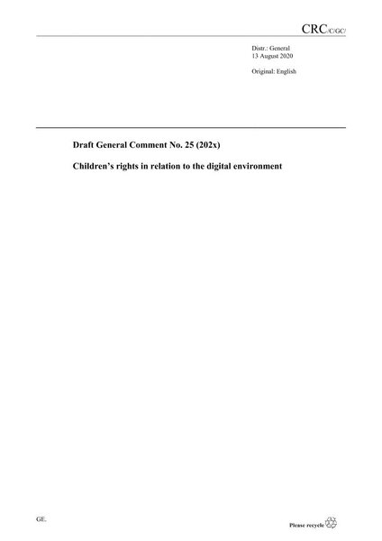 Der Kinderrechte-Ausschuss der Vereinten Nationen verfasst derzeit eine Allgemeine Bemerkung zu den Rechten der Kinder in Bezug auf das digitale Umfeld. Den Entwurf der Allgemeinen Bemerkung finden Sie hier.