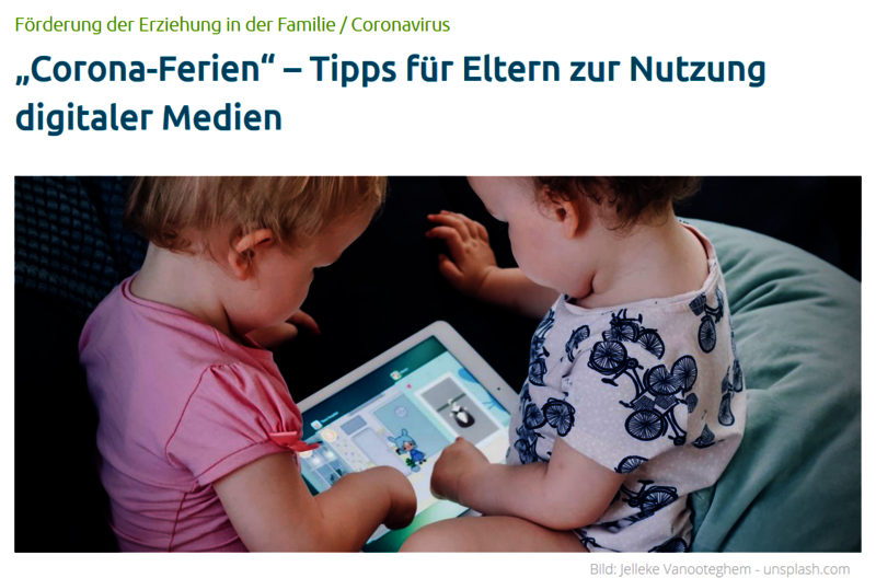 „Corona-Ferien“ - Tipps für Eltern zur Nutzung digitaler Medien