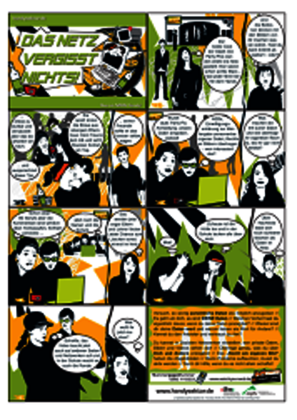 Das Unterrichtsmaterial zum Thema "Das Netz vergisst nichts!" behandelt den leichtsinnigen Umgang von Jugendlichen mit privaten Fotos, Party-Bildern und Videos. Zu dem Unterrichtsmaterial wurde ein Comic erstellt, der die Risiken der Veröffentlichung von privaten Bildern im Internet veranschaulicht. Das Material bietet Ihnen die Möglichkeit mit den Jugendlichen über Datenschutz, üble Nachrede und das Recht am eigenen Bild zu sprechen.