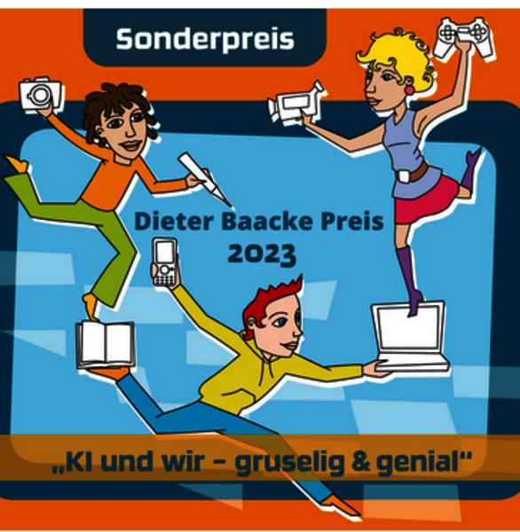Neben fünf festgelegten Kategorien widmet sich der Dieter Baacke Preis alljährlich einem anderen Schwerpunkt. Dieses Jahr beschäftigt sich der Sonderpreis mit dem Thema „KI und wir – gruselig und genial“. Medienpädagogische Projekte, die sich mit Chancen und Herausforderungen Künstlicher Intelligenz (KI) beschäftigen sowie solche, die Kinder, Jugendliche und Familien für eine kreative und zugleich kritische Auseinandersetzung mit KI und Algorithmen anregen, können zum diesjährigen Sonderpreis eingereicht werden.
