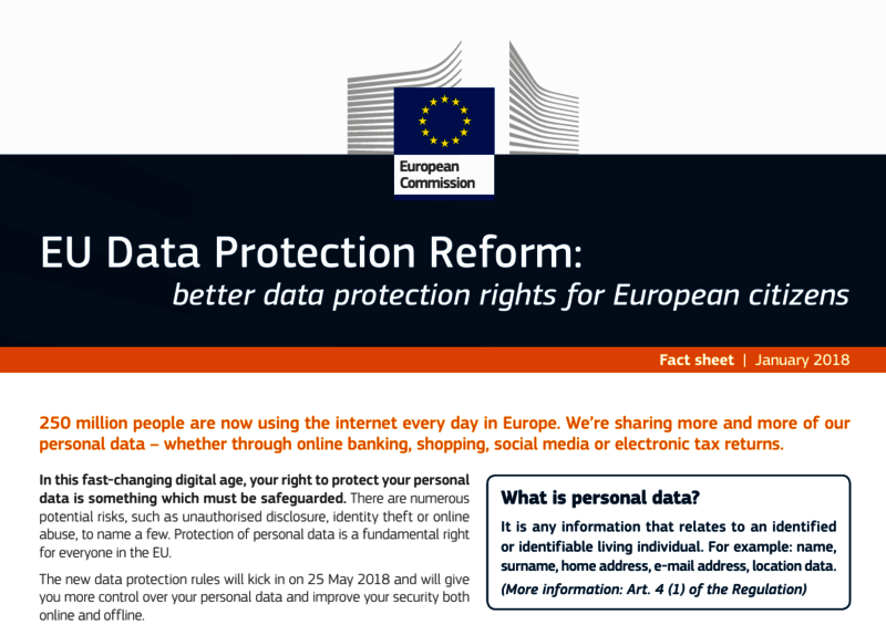 Die Europäische Kommission hat ein Factsheet zur Datenschutz-Grundverordnung (DS-GVO) erstellt, die ab 25. Mai 2018 wirkt.