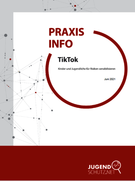 Die aktuelle Praxisinfo TikTok von jugendschutz.net zeigt auf, wie Kinder und Jugendliche für einen sicheren Umgang mit der App sensibilisiert werden können und informiert detailliert über die Risiken, die mit TikTok im Zusammenhang stehen.