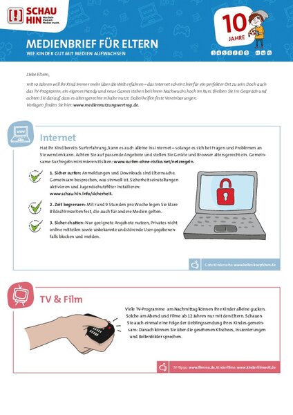 Mit 10 Jahren wollen Kinder immer mehr über die Welt erfahren - das Internet scheint hierfür ein perfekter Ort zu sein. Doch auch das TV-Programm, ein eigenes Handy und neue Games stehen bei Ihrem Nachwuchs hoch im Kurs. Bleiben Sie als Eltern im Gespräch und achten Sie darauf, dass Ihr Kind altersgerechte Inhalte nutzt. Dabei helfen feste Vereinbarungen.