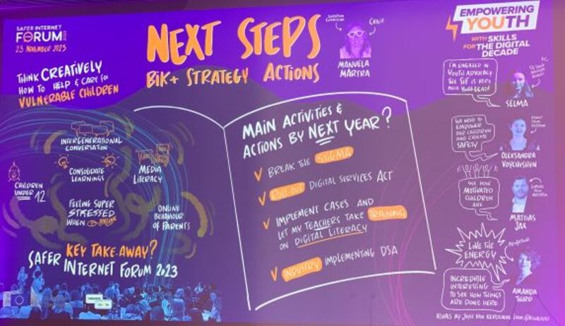 Generationenübergreifende Gespräche, Medienkompetenzschulungen nicht nur für Jugendliche, sondern auch für Lehrer und Eltern sowie kreative Konzepte für gefährdete Kinder wurden als geeignet erachtet, um eine kohärente Strategie zur Bewältigung gegenwärtiger und künftiger Herausforderungen im Internet zu entwickeln. Auf regulatorischer Ebene wurde der Digital Services Act (DSA) als Durchbruch und großer Schritt nach vorn begrüßt, um das Internet zu einem besseren Ort für Kinder zu machen. Die Einführung und Umsetzung des Digital Services Acts durch die Unternehmen wird nach Ansicht der teilnehmenden in den kommenden Monaten eine wichtige Rolle spielen.