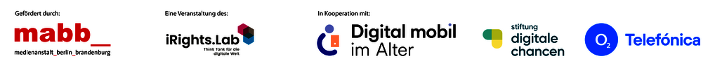 Die Multiplikator*innen-Schulung wird vom iRights.Lab in Kooperation mit Digital mobil im Alter, einem Projekt der Stiftung Digitale Chancen und O₂ Telefónica, umgesetzt. Die Veranstaltung findet im Rahmen des Projekts „Jetzt mal ehrlich – Wissen, Meinung und Technik“ des iRights.Lab statt, welches durch die mabb – Medienanstalt Berlin-Brandenburg gefördert wird.