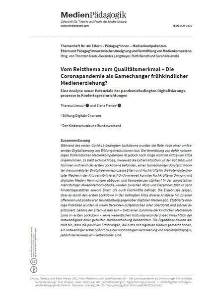 Vom Reizthema zum Qualitätsmerkmal - Die Coronapandemie als Gamechanger frühkindlicher Medienerziehung?
