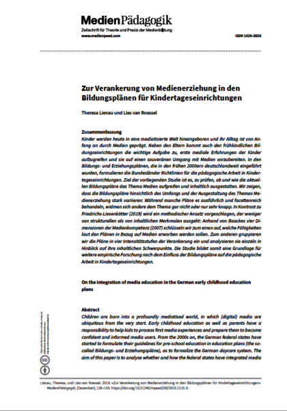 Zur Verankerung von Medienerziehung in den Bildungsplänen für Kindertageseinrichtungen