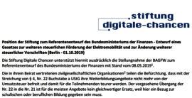 Position der Stiftung Digitale Chancen zum Referentenentwurf des Bundesministeriums der Finanzen - Entwurf eines Gesetzes zur weiteren steuerlichen Förderung der Elektromobilität und zur Änderung weiterer steuerlicher Vorschriften