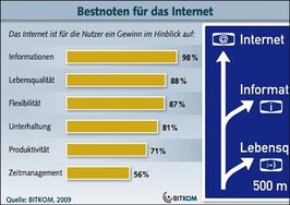 <p>Das Internet bringt klare Gewinne an Lebensqualität. In einer repräsentativen Studie des Hightech-Verbands BITKOM sagten das neun von zehn deutschen Internet-Nutzern (88 Prozent). Ein Plus an nützlichen Informationen empfinden sogar 98 Prozent der Surfer. Vorteile durch das Web erleben die Anwender auch in puncto Flexibilität (87 Prozent), Unterhaltung (81 Prozent) und Produktivität (71 Prozent). </p>