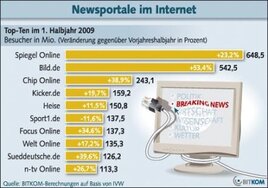 <p>Fast 3,1 Milliarden Besuche verzeichnen die 20 beliebtesten deutschen Online-Nachrichtenportale im ersten Halbjahr 2009. Das ist ein erneuter Rekord. Im Vorjahreszeitraum waren es lediglich 2,4 Milliarden Besuche.<>/p>