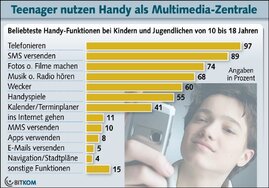 <p> Eine repräsentative Umfrage vom Institut Forsa im Auftrag des Hightech-Verbandes BITKOM zeigt: In Deutschland haben 94 Prozent der Mädchen und 89 Prozent der Jungen von 10 bis 18 Jahren ein eigenes Mobiltelefon. Insbesondere Multimedia-Funktionen und schickes Design sind vielen Kindern und Jugendlichen wichtig.</p>