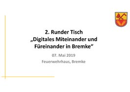 Der 2. Runde Tisch im Projekt bremke.digital fand am 07. Mai 2019 im Feuerwehrhaus in Bremke statt. Hier finden Sie die Präsentation dazu.