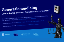 Diesmal treffen in Düsseldorf Jung auf Alt, um gemeinsam über unser Grundgesetz und unsere Demokratie zu sprechen: wie können wir diese schützen - auch im digitalen Raum?
