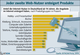 27 Millionen Deutsche haben schon einmal Waren oder Dienstleistungen bei einer Auktion im Internet ersteigert. Das entspricht 54 Prozent aller deutschen Internet-Nutzer ab 14 Jahren, wie aus einer Erhebung des Instituts Forsa im Auftrag des Hightech-Verbands BITKOM hervorgeht.