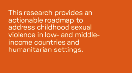“Building Safe Futures: Solutions to end childhood sexual violence” is a comprehensive evidence review highlighting what works to prevent and respond to childhood sexual violence in low- and middle-income countries.